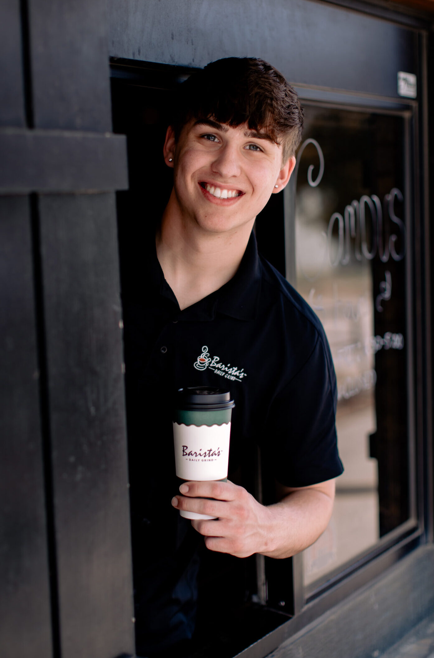 I am from Kearney. My favorite drink is an Everybody’s Favorite Cookie White Mocha. I wanted to work at Barista’s because growing up in town it was my favorite coffee shop to go to, so when I went to college I thought it would be a good job for me!