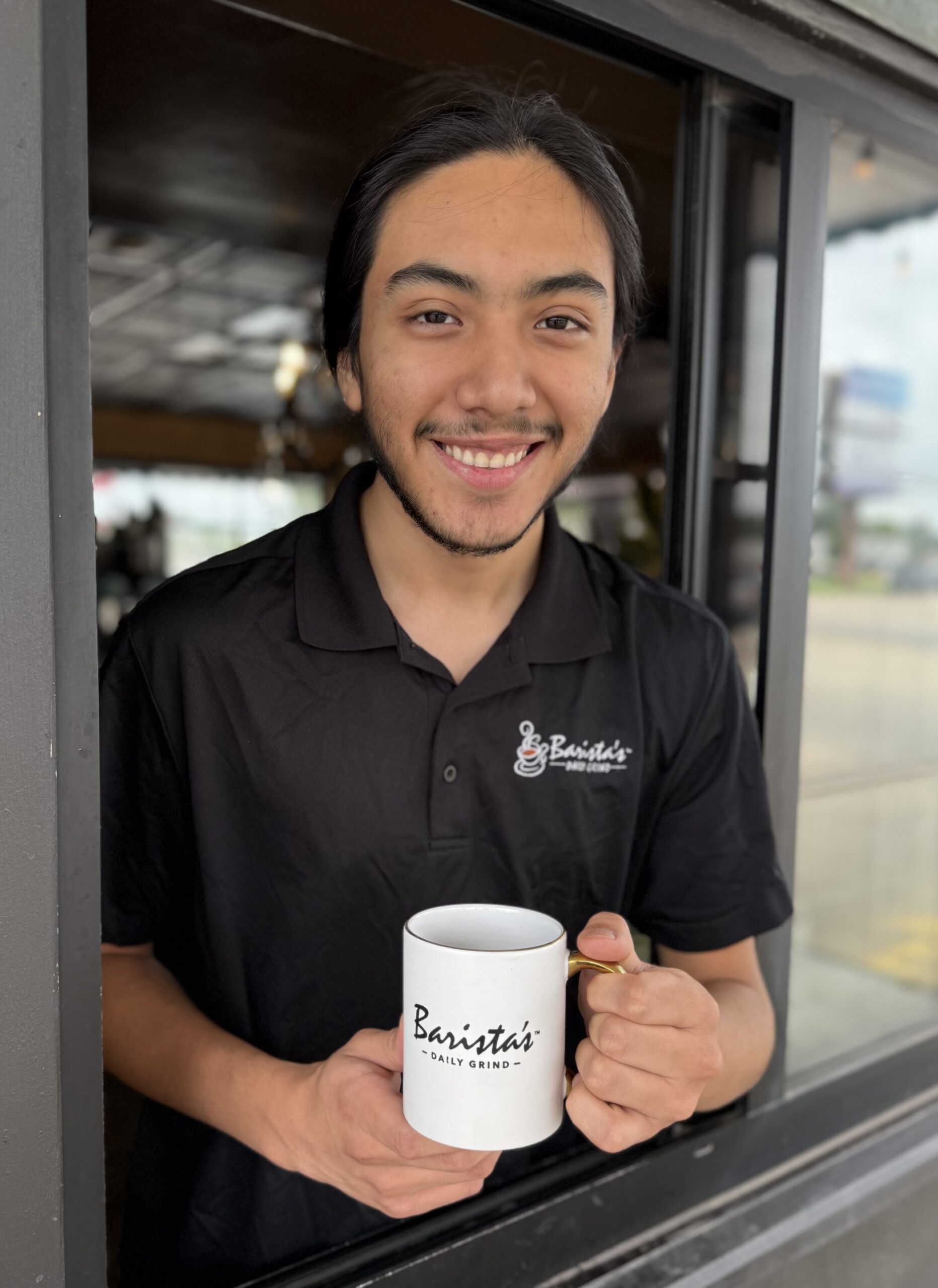 Hi my name is Isaiah! I’m originally from California, but my family moved here for better job opportunities. I have been here a short time but am already loving the staff, customers, and atmosphere. As an avid coffee drinker, Baristas is the perfect place for me. My favorite drink is the hot matcha. You should definitely get yours hand on it!