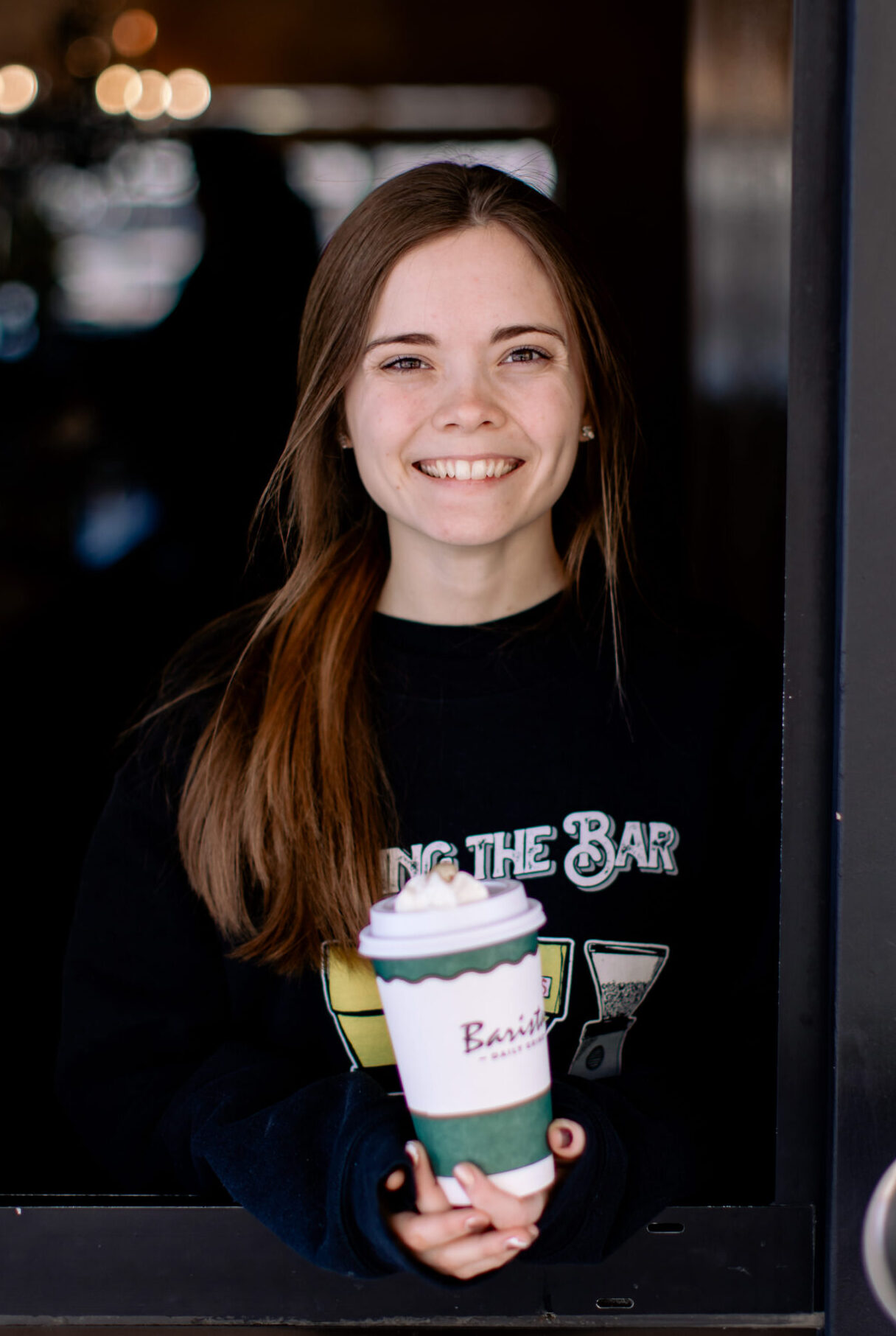 I am from Kearney. My favorite drink is an Everybody’s Favorite Cookie White Mocha. I wanted to work at Barista’s because growing up in town it was my favorite coffee shop to go to, so when I went to college I thought it would be a good job for me!