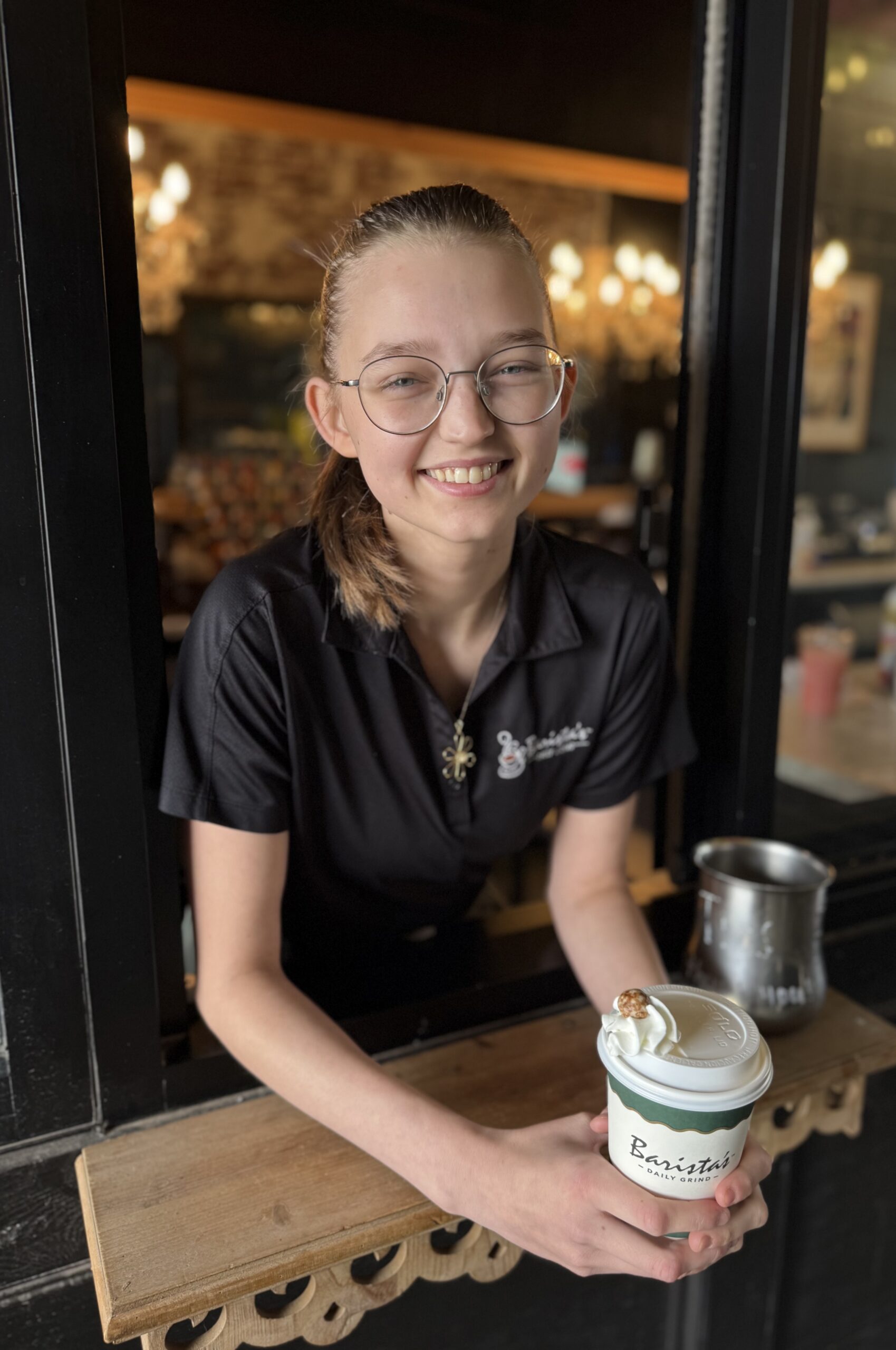 Hello everyone! My name is RyLee! I am from all over the place, due to my dad being in the military. However, Kearney has always felt like home! I have always loved coming to Barista’s and now I’m lucky enough to work here! It has always been such a special place to me due to the amazing people and the unique atmosphere! Personally my favorite drinks are a vanilla matcha or a spiced chai!